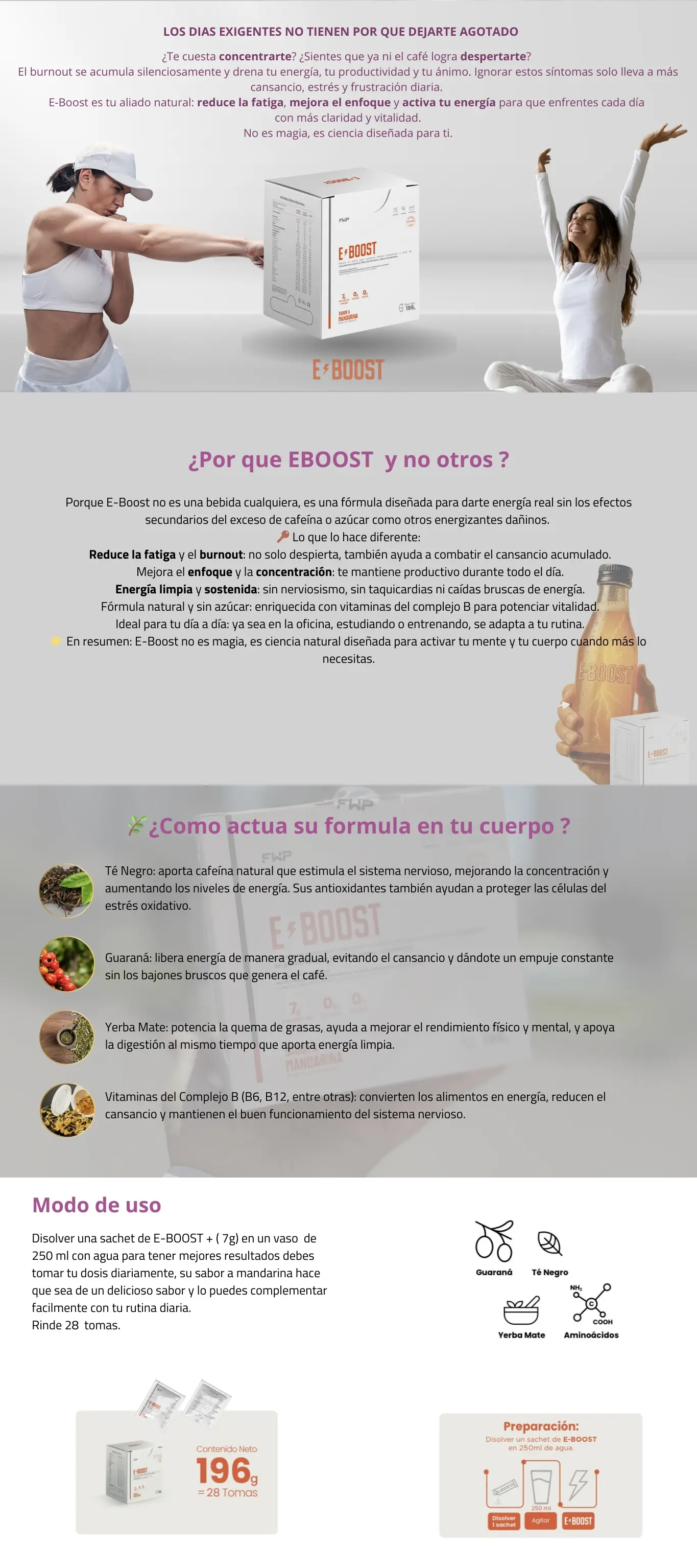 me encanto e-boost, yo era fan de las bebidas energéticas, pero siempre me dejaban con el corazón acelerado. Probé EBOOST y fue el cambio perfecto: energía limpia, me siento más despierta y hasta me ayuda a estar de mejor humor jajajajja No volví a comprar las típicas latas. Lo recomiendo